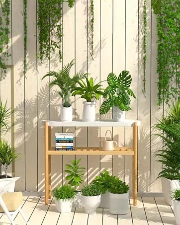 2 Tier Bamboo Plant Shelf 15 Inch 40cm Indoor Succulent Stand Multi Plant Stand Tabletop Plant Organizer Rustic Plant Ladder Shelf Desktop Plant Rack Amazon Co Uk Garden